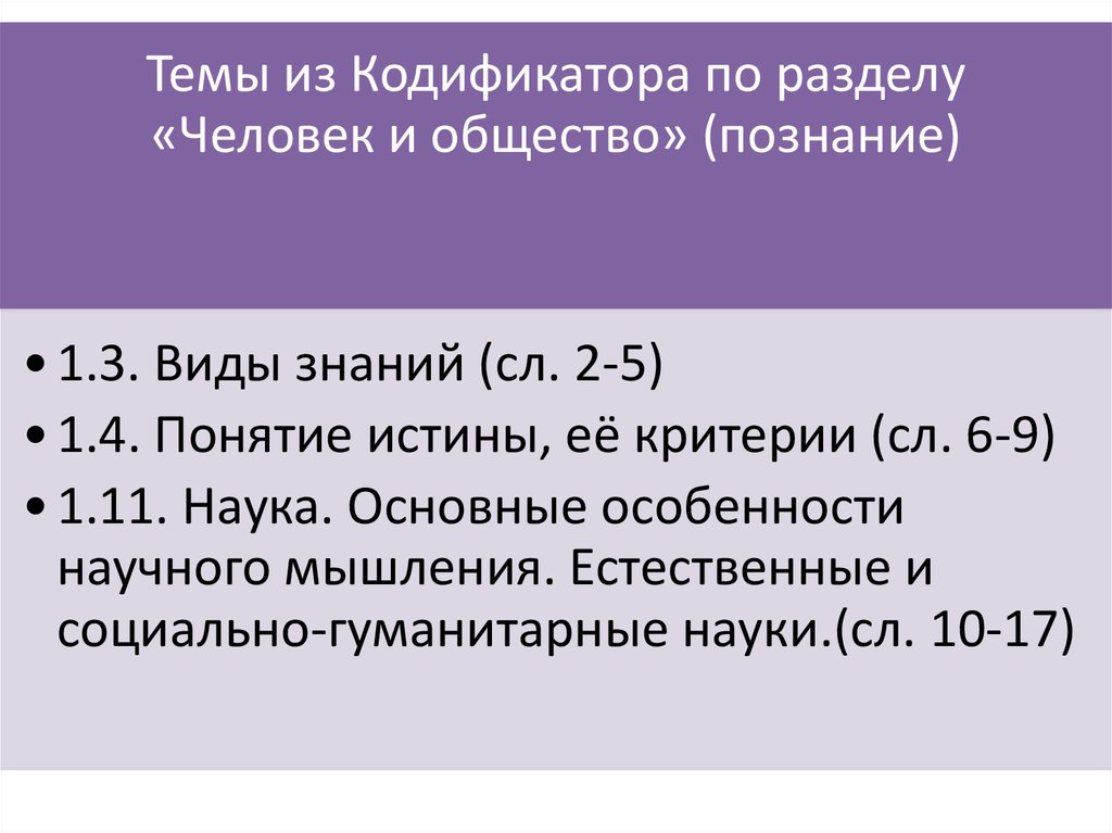 Темы из Кодификатора по разделу«Человек и общество» (познание)