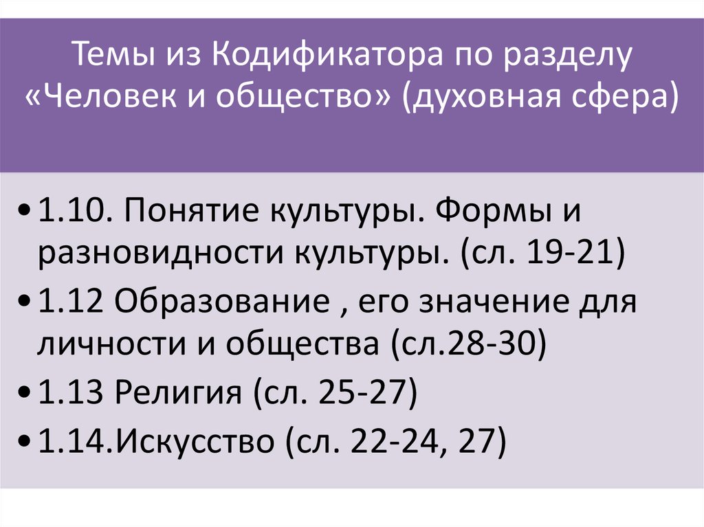 Темы из Кодификатора по разделу«Человек и общество» (духовная сфера)
