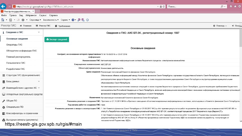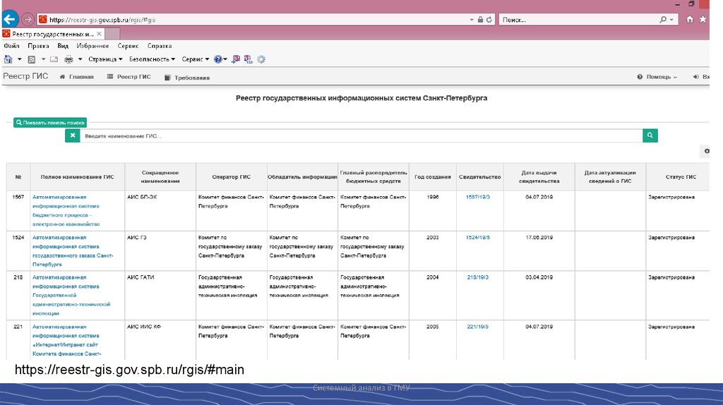 https://reestr-gis.gov.spb.ru/rgis/#mainСистемный анализ в ГМУ