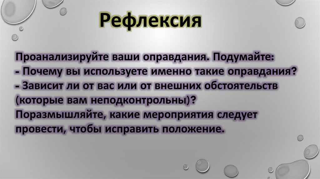 РефлексияПроанализируйте ваши оправдания. Подумайте: