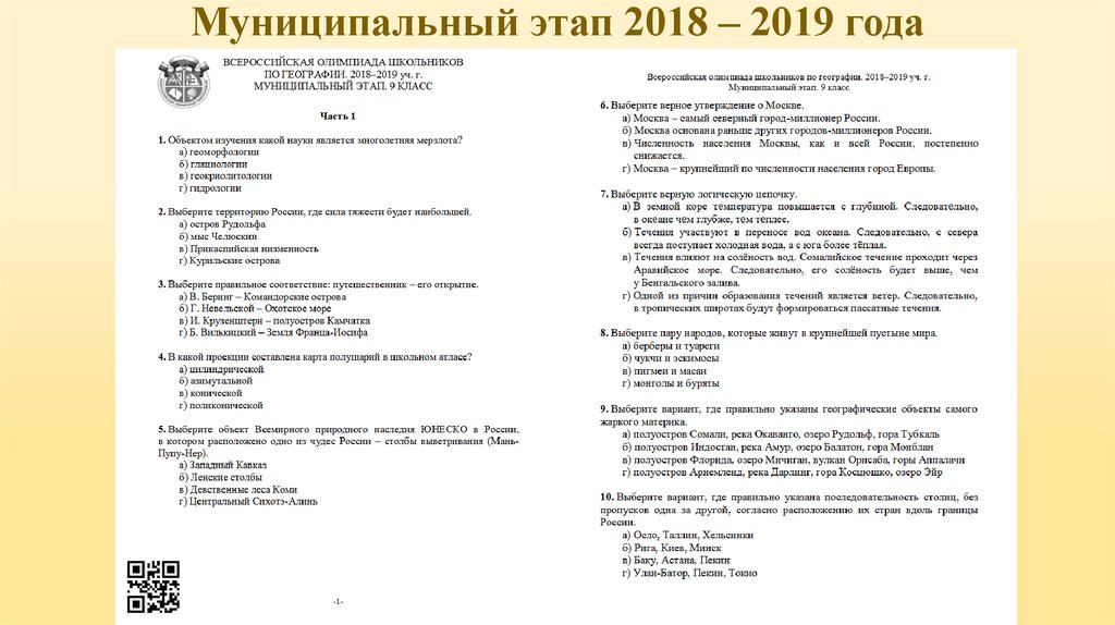 Муниципальный этап 2018 – 2019 года3.