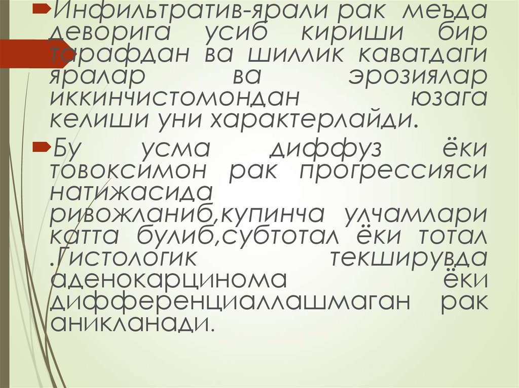 Инфильтратив-ярали рак меъдадеворига усиб кириши бир