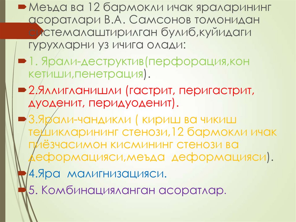 1. Кизилунгач, ошкозон – ичак касалликлари.