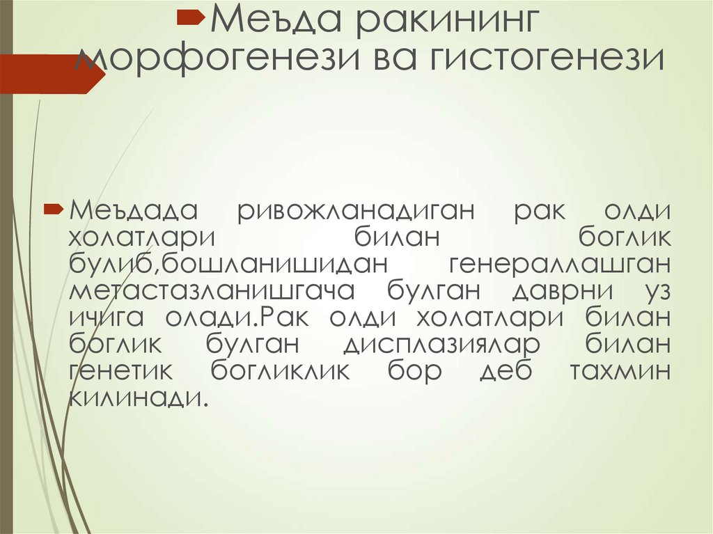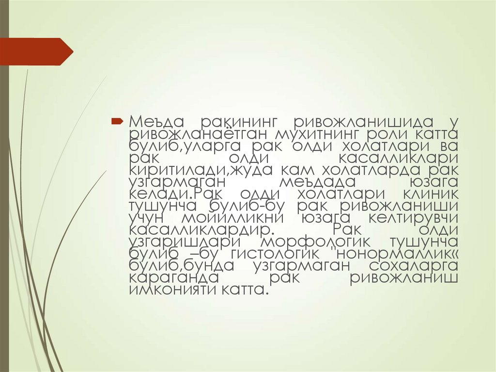 Метастазланиш:гематоген,лимфоген,имплантацион берилади.