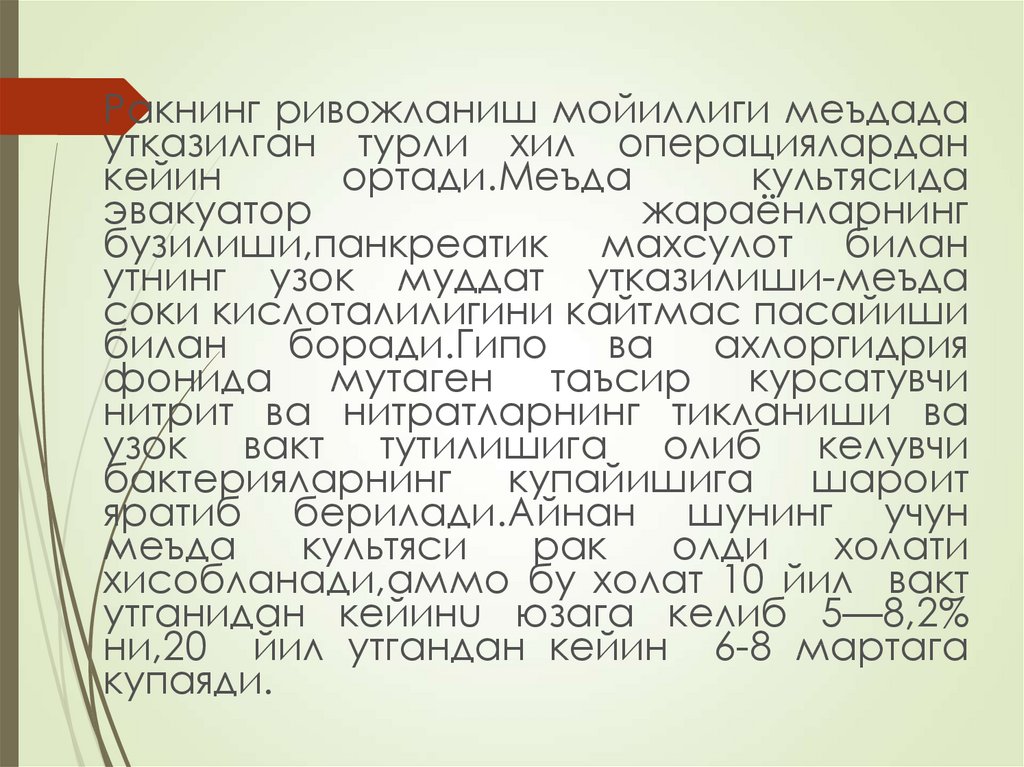 окибатида ривожланади (алкогол, иссик ёки дагал