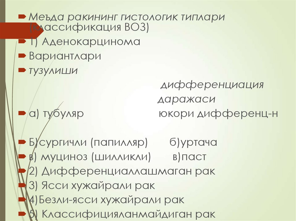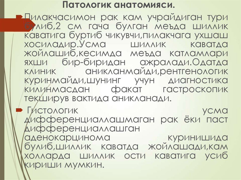 имконини беради. Гистологик ракнинг бу тури аденокарцинома