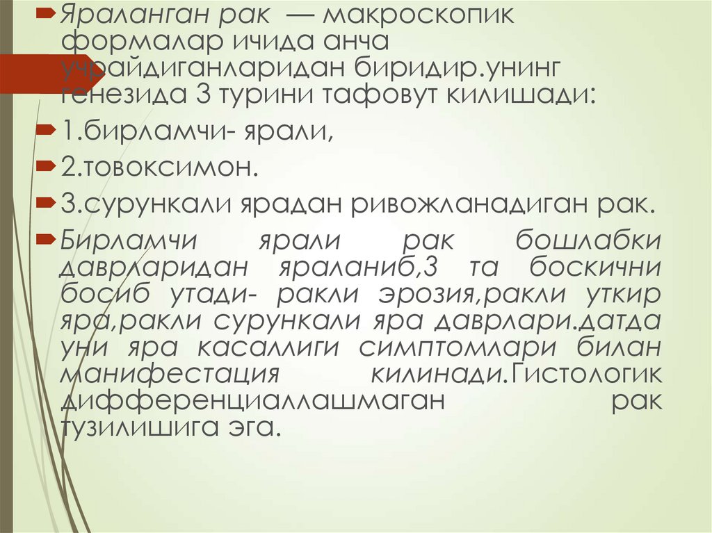 ривожланади.Баъзи холларда яра-ракни товоксимон ракдан