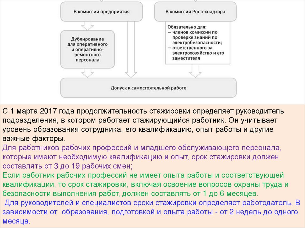 которые имеют необходимую квалификацию и опыт, срок стажировки должен
