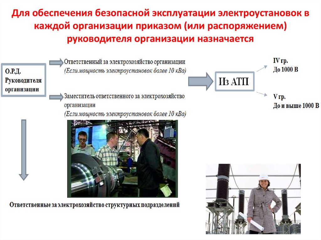 Для обеспечения безопасной эксплуатации электроустановок вкаждой организации приказом (или распоряжением)