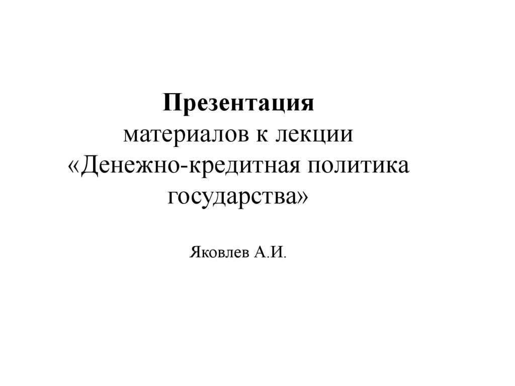 1. Презентация материалов к лекции «Денежно-кредитная политика государства» Яковлев А.И.