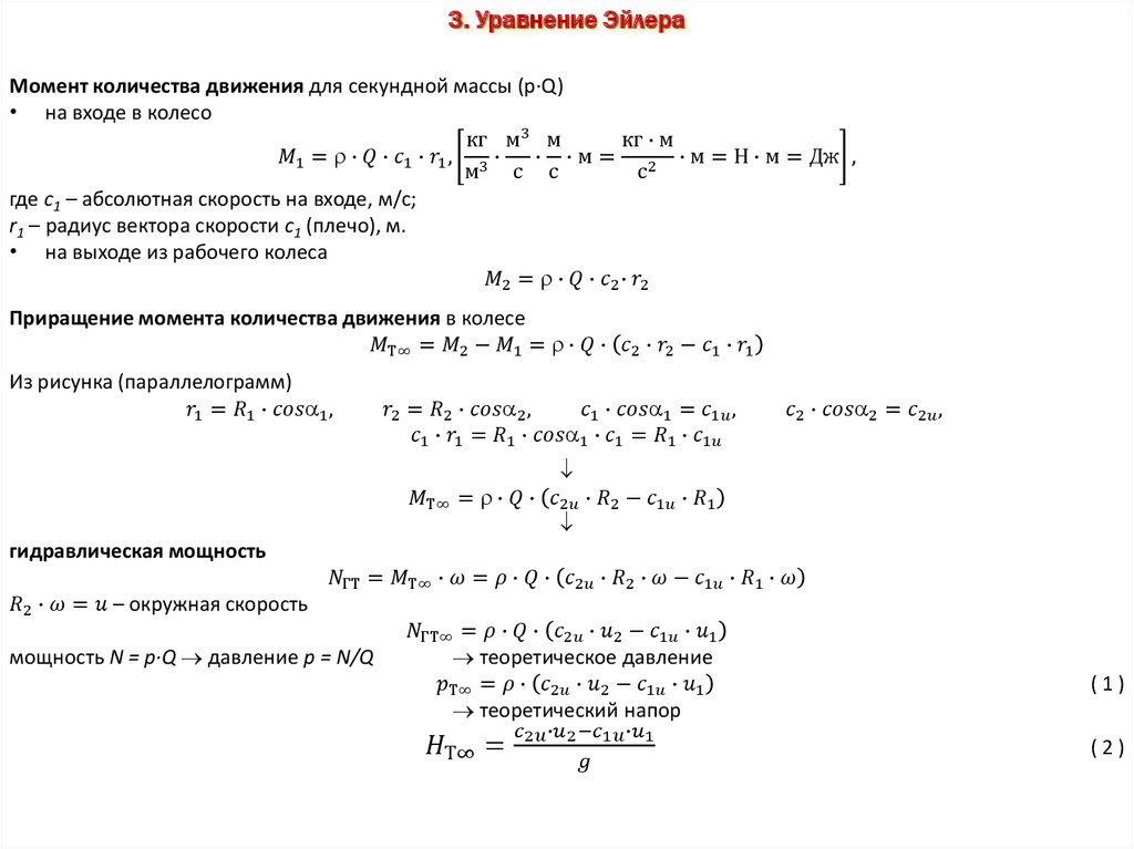 3. Уравнение ЭйлераМомент количества движения для секундной массы (р∙Q)