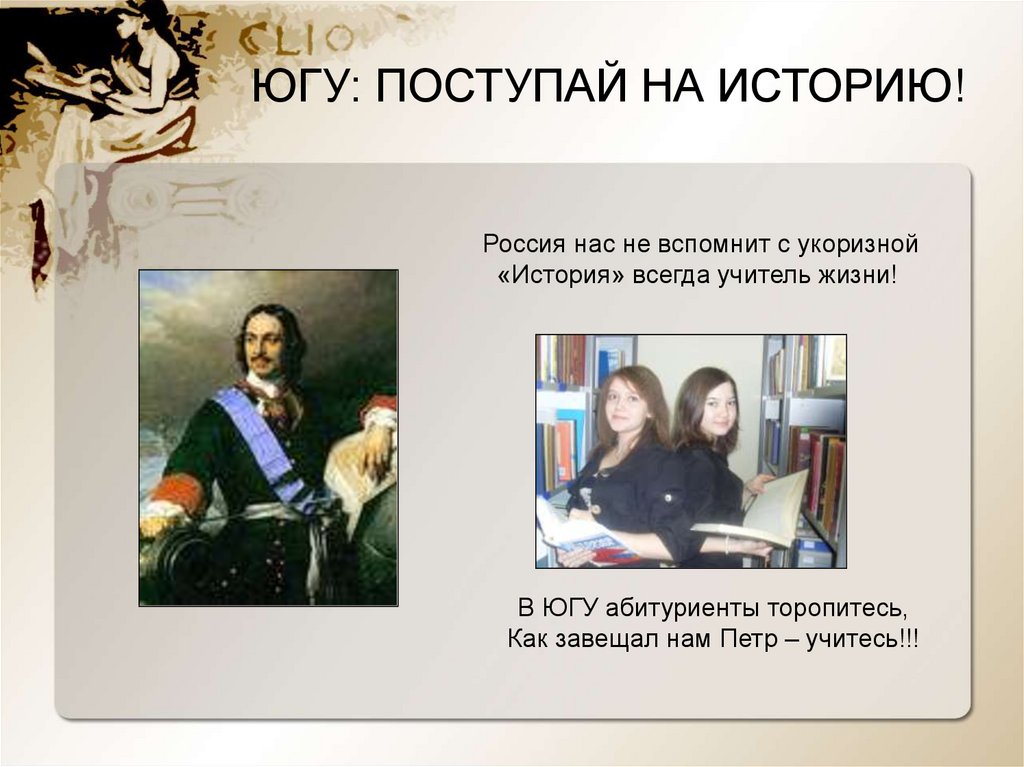 ЮГУ: ПОСТУПАЙ НА ИСТОРИЮ!Дружили два товарища…
