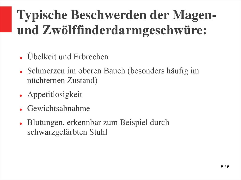 meist im Alter über 50 Jahre – an einem Magengeschwür