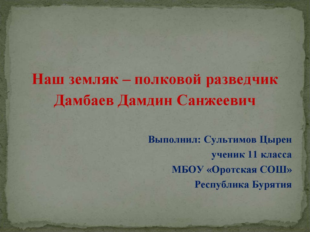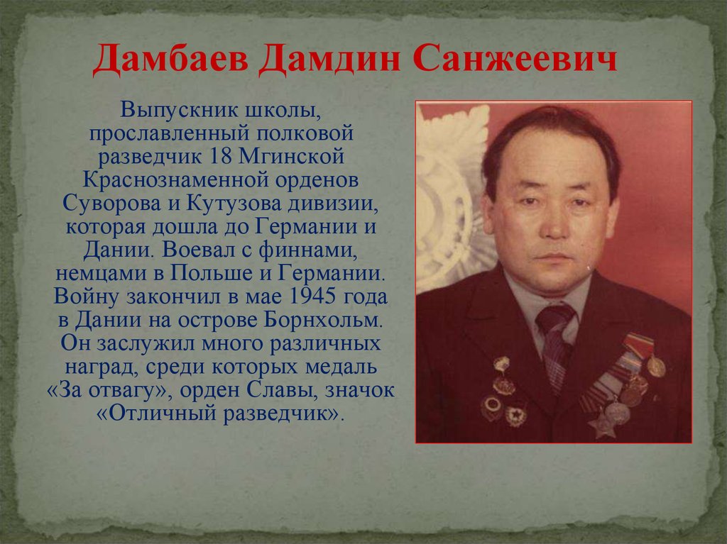 Наш земляк – полковой разведчик Дамбаев Дамдин Санжеевич