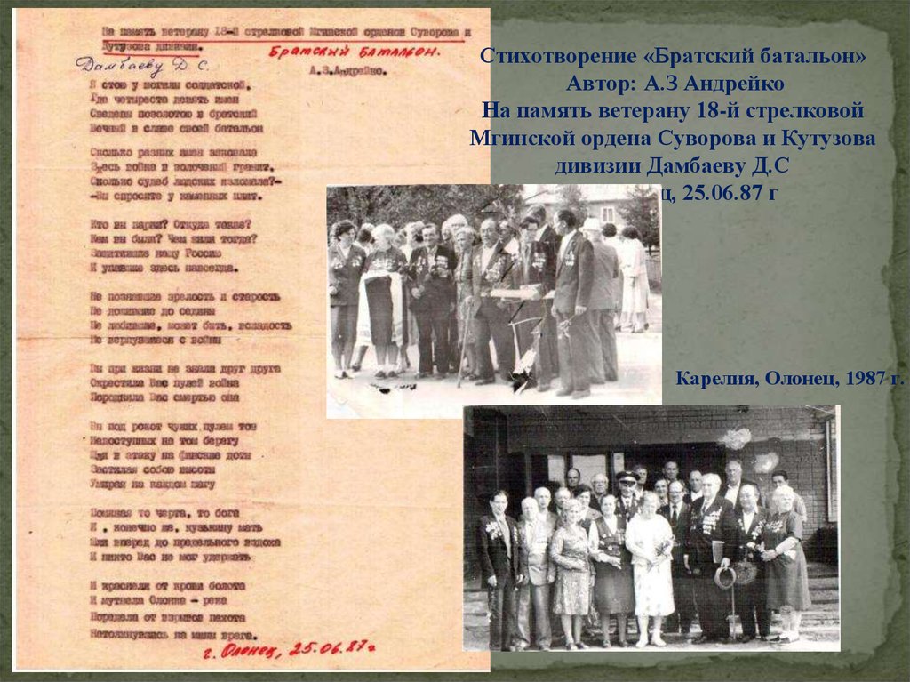 Стихотворение «Братский батальон»Автор: А.З Андрейко