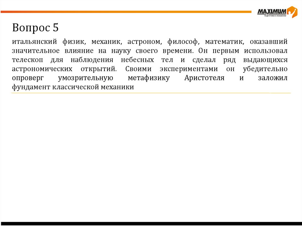 Вопрос 5итальянский физик, механик, астроном, философ, математик, оказавший