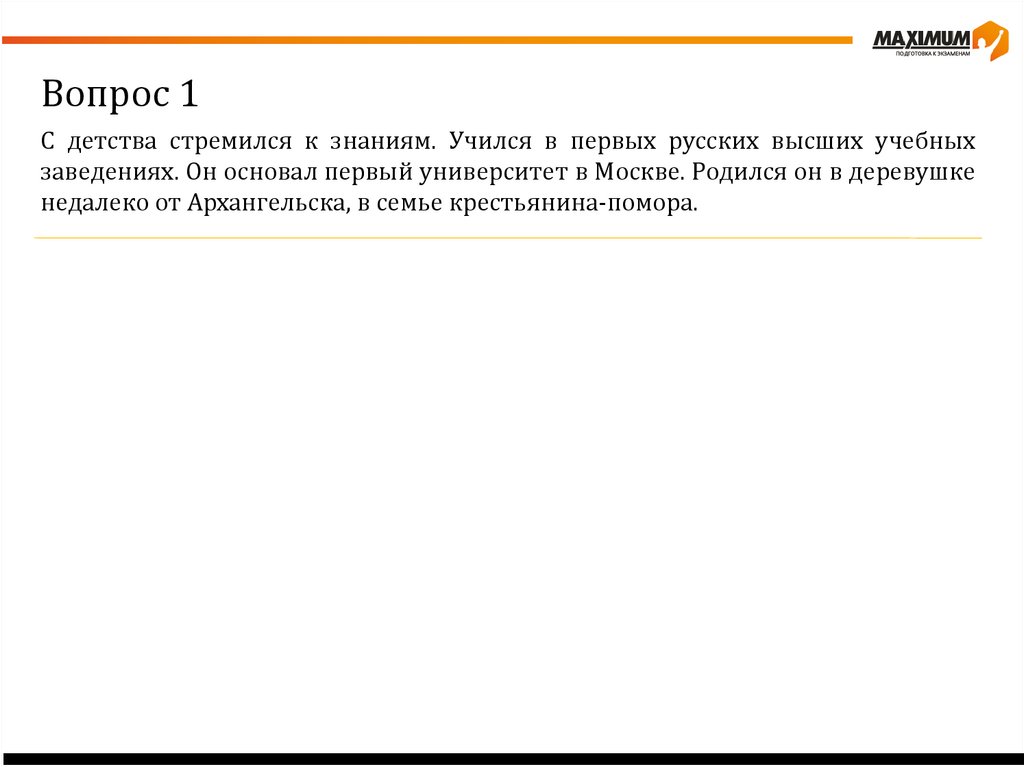 Вопрос 1С детства стремился к знаниям. Учился в первых русских высших учебных