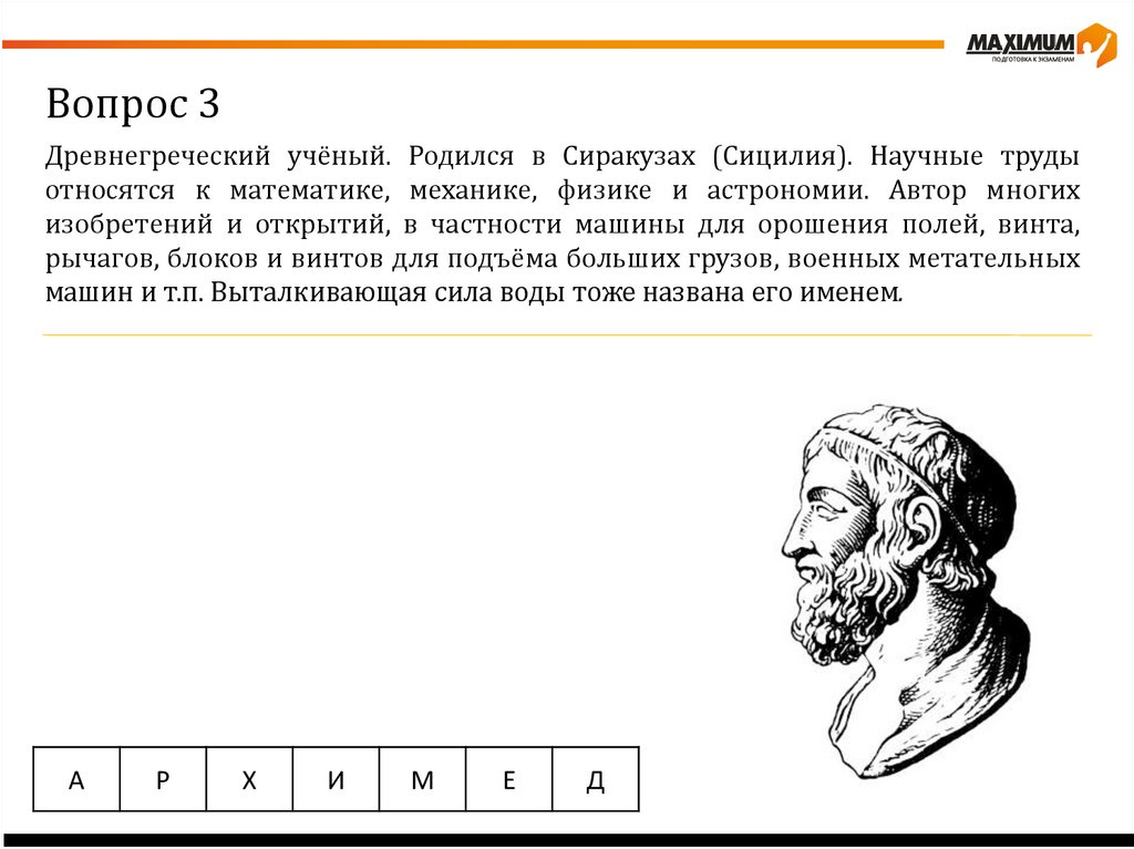 Вопрос 3Древнегреческий учёный. Родился в Сиракузах (Сицилия). Научные труды