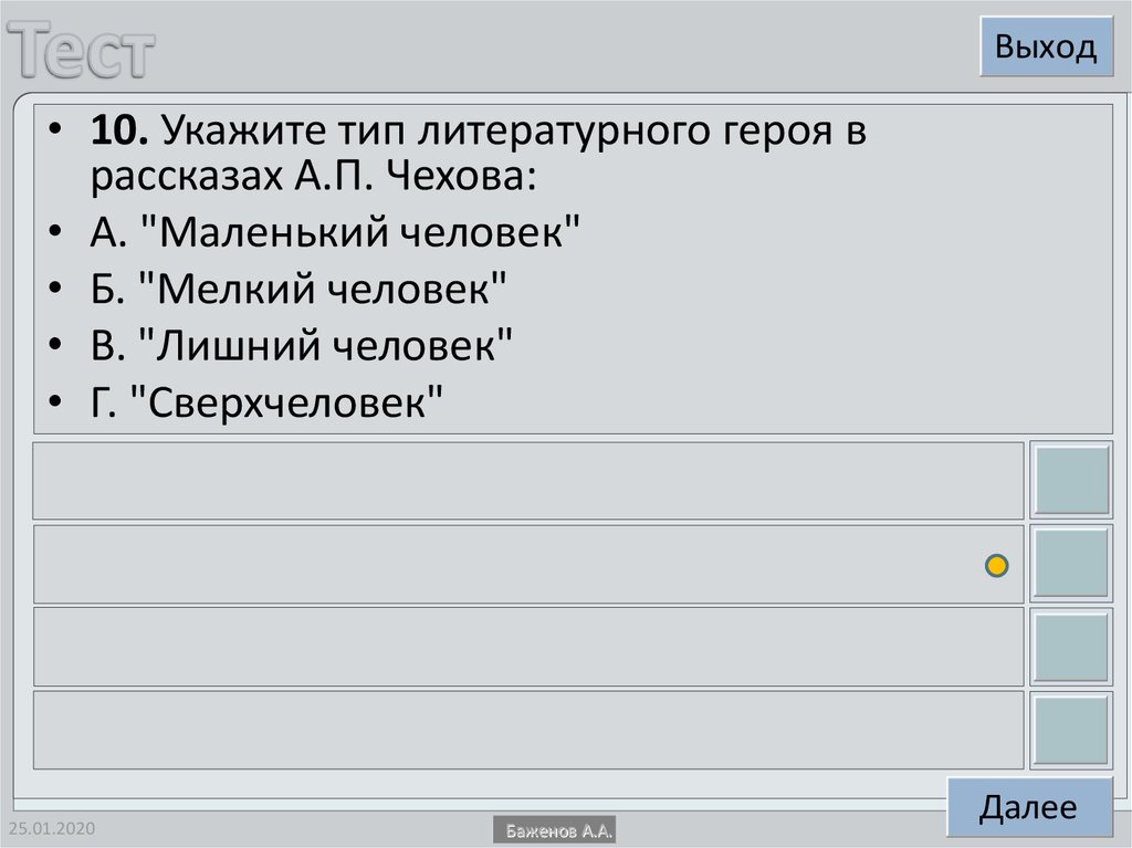 Тест по творчеству А.П. Чехова. 11 класс