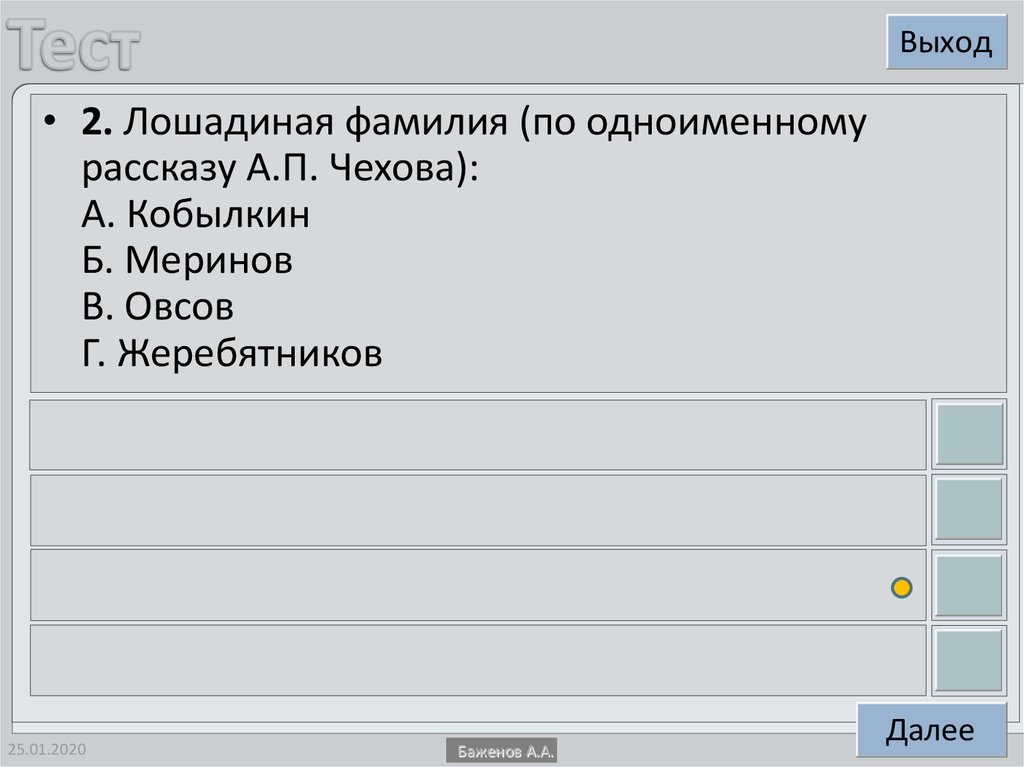 Выход• 11. Какой рассказ А.П. Чехова повествует о жизни