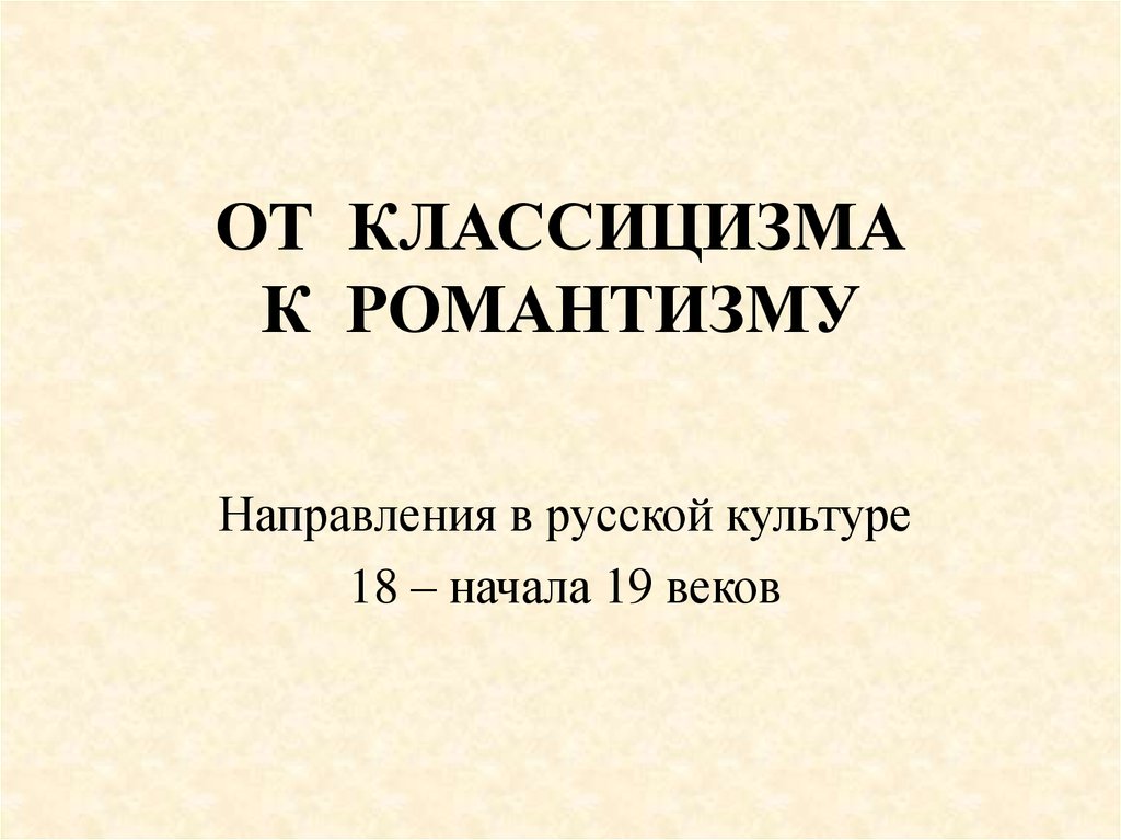От классицизма к романтизму. Направления в русской культуре 18 – начала 19 веков