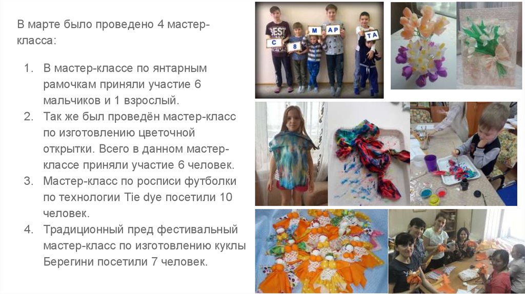 В марте было проведено 4 мастеркласса:1. В мастер-классе по янтарным