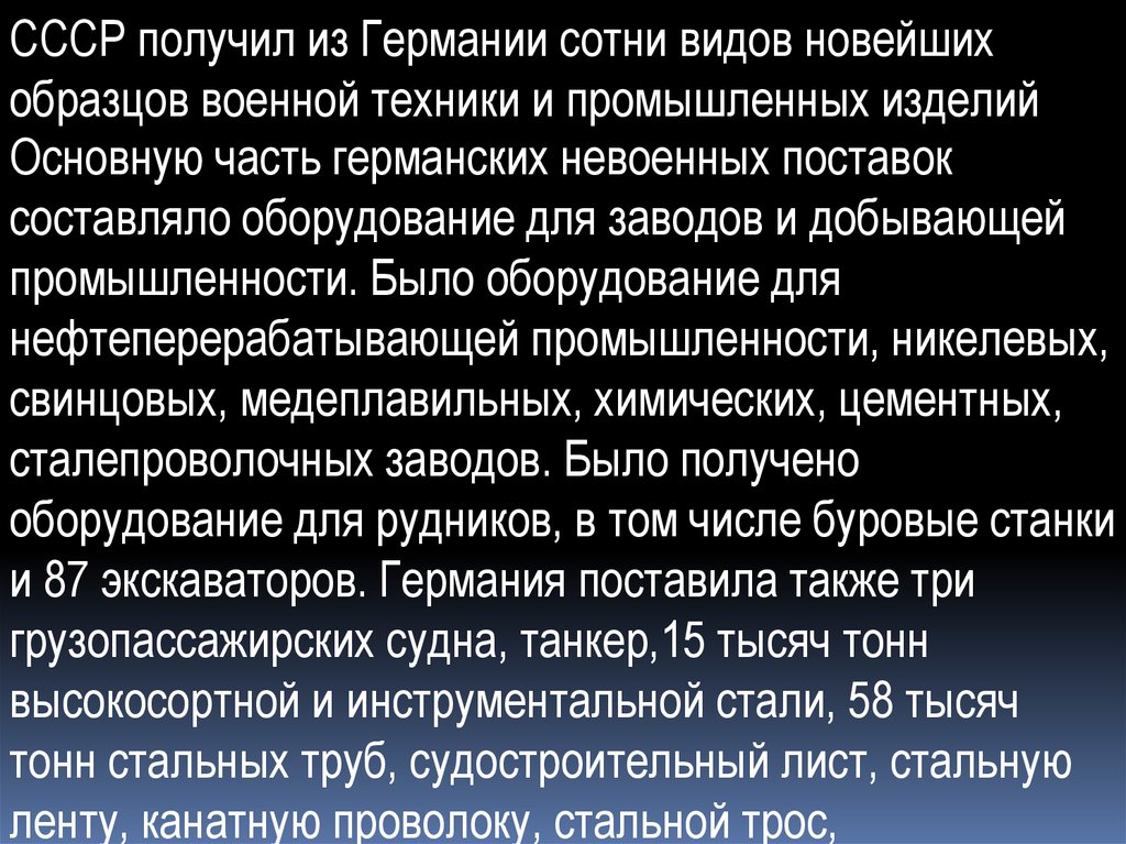 СССР получил из Германии сотни видов новейшихобразцов военной техники и промышленных изделий