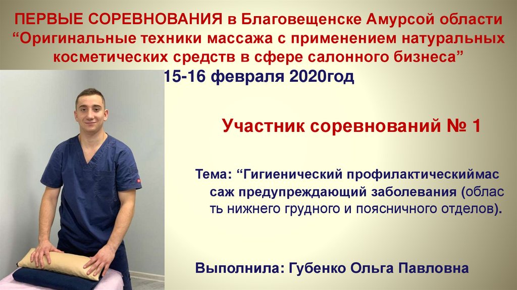 ПЕРВЫЕ СОРЕВНОВАНИЯ в Благовещенске Амурсой области“Оригинальные техники массажа с применением натуральных