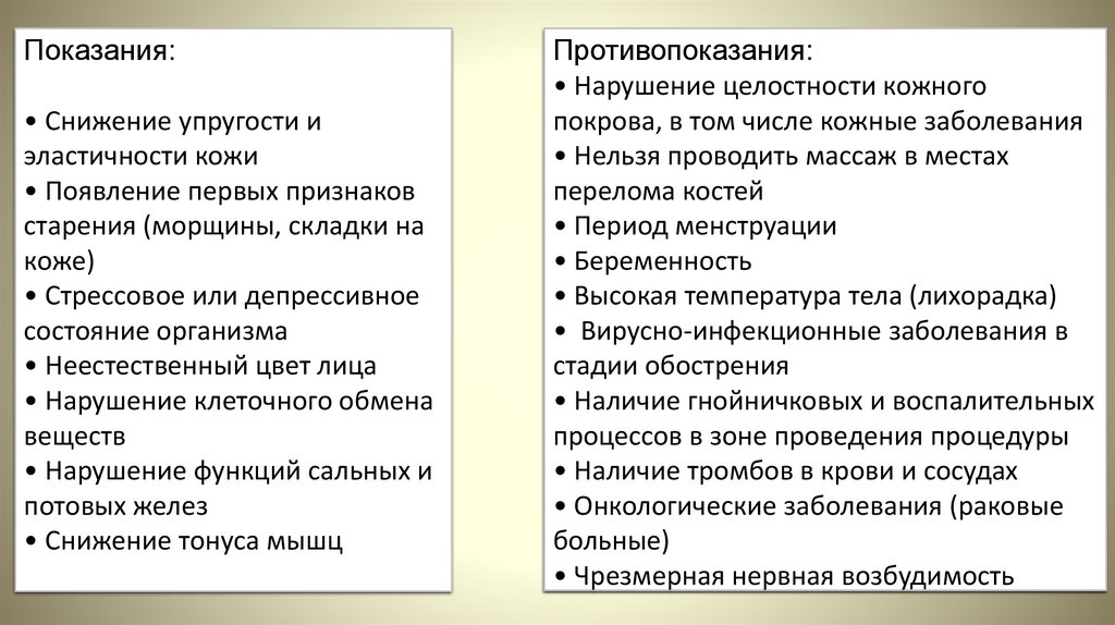 противопоказания.5. Основная цель для проведению гигиенического массажа.