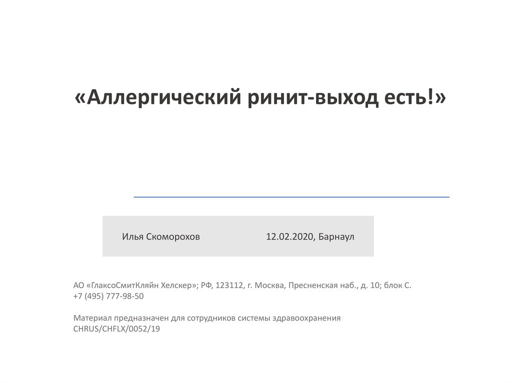 «Аллергический ринит-выход есть!»Илья Скоморохов