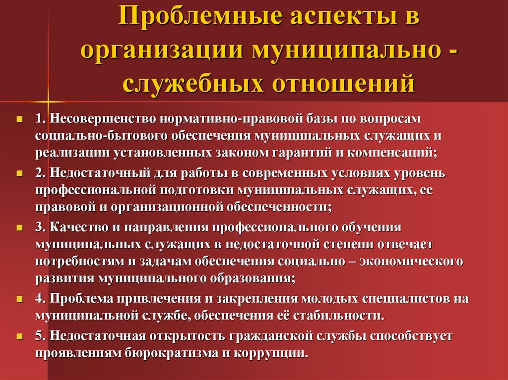Проблемные аспекты ворганизации муниципально служебных отношений