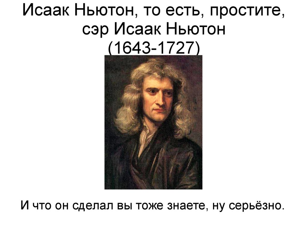Исаак Ньютон, то есть, простите,сэр Исаак Ньютон