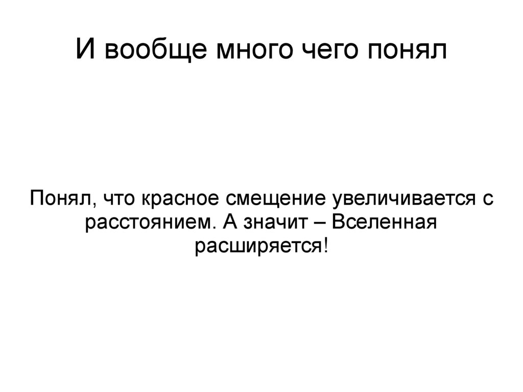 И вообще много чего понялПонял, что красное смещение увеличивается с