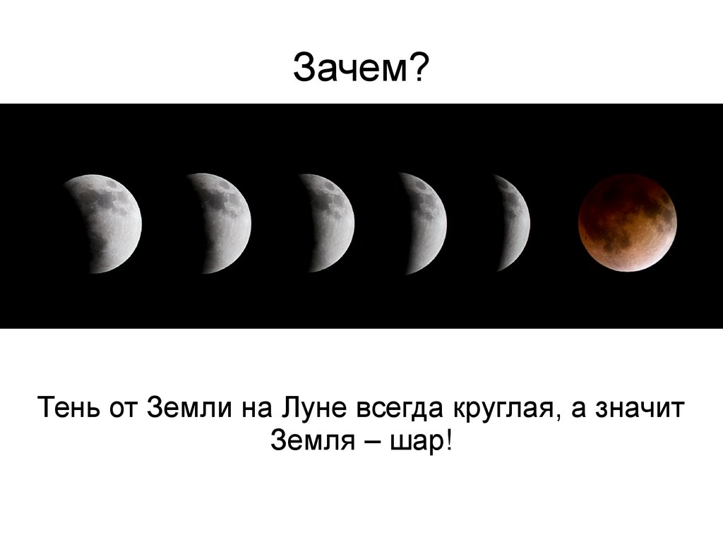 Зачем?Тень от Земли на Луне всегда круглая, а значит