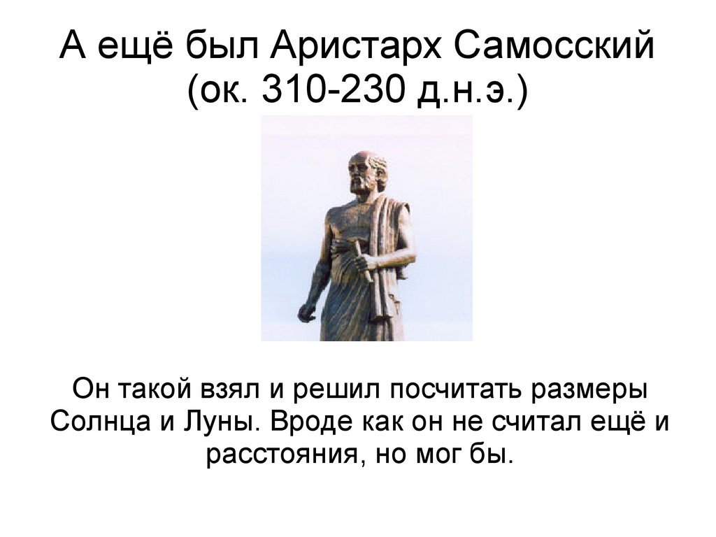 А ещё был Аристарх Самосский(ок. 310-230 д.н.э.)