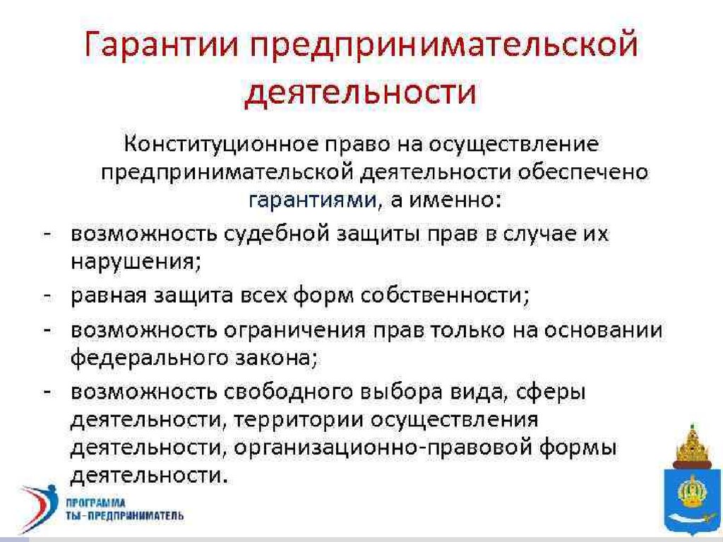 Гарантии предпринимательской деятельности