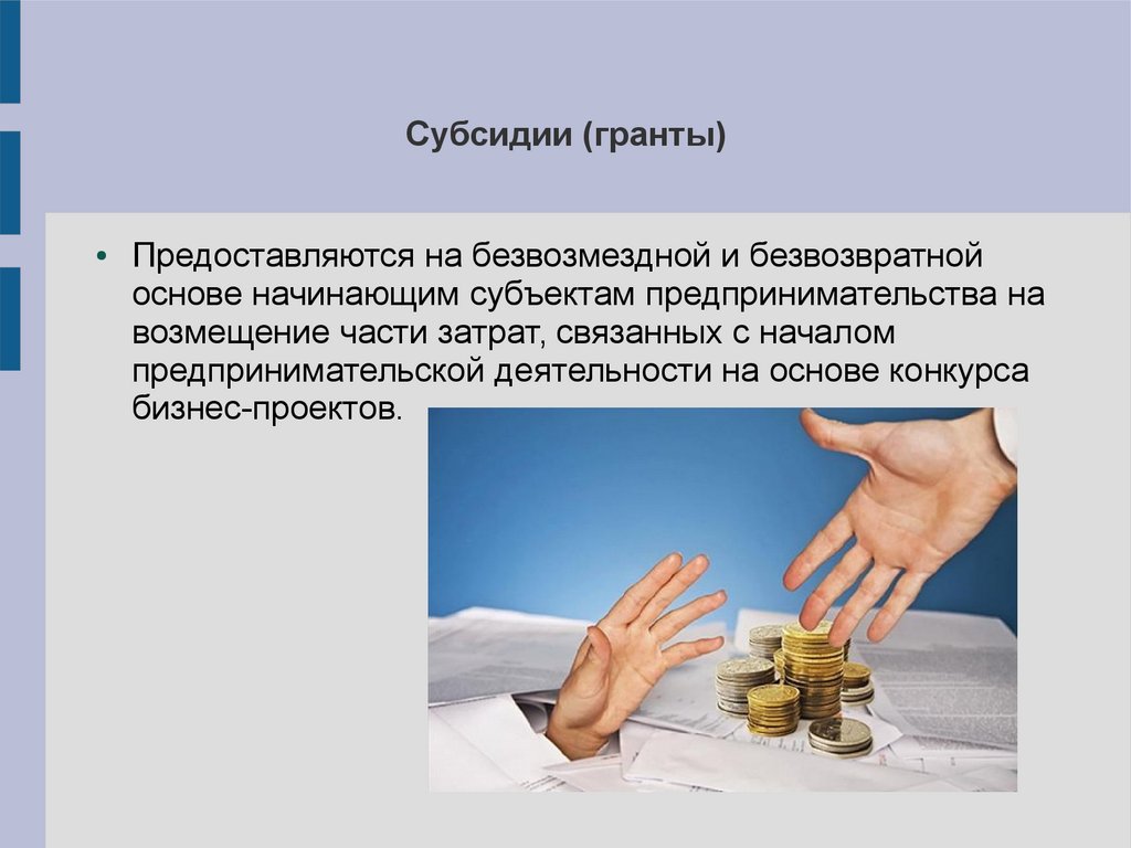 Субсидии (гранты)Предоставляются на безвозмездной и безвозвратной