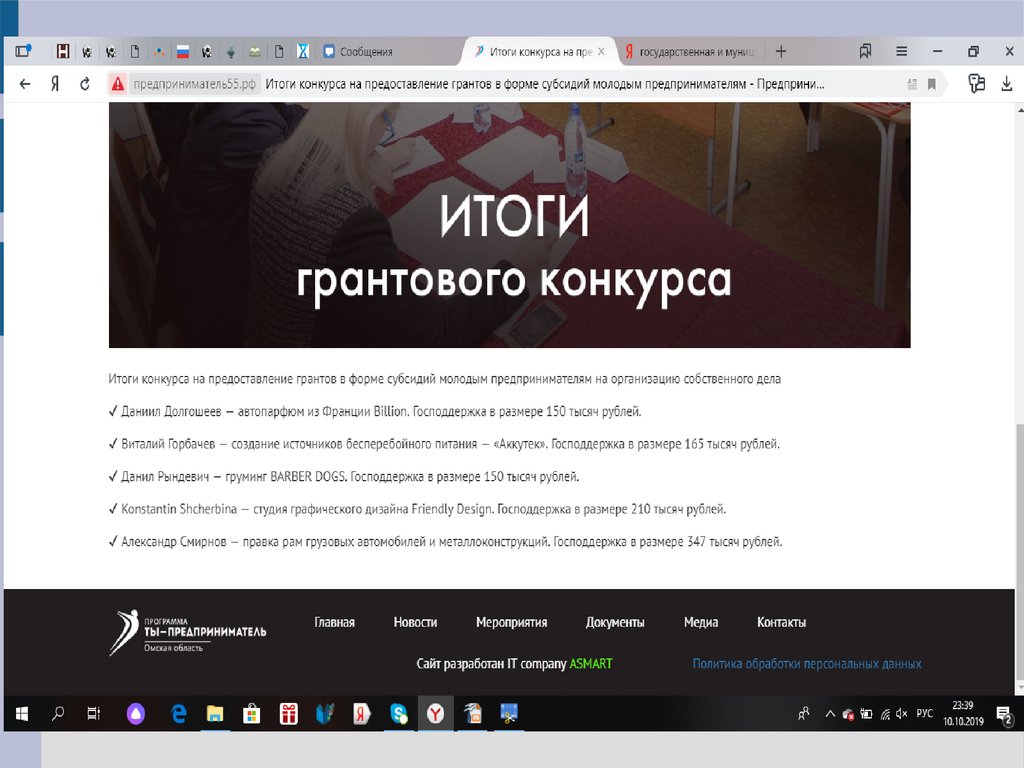 основе начинающим субъектам предпринимательства на
