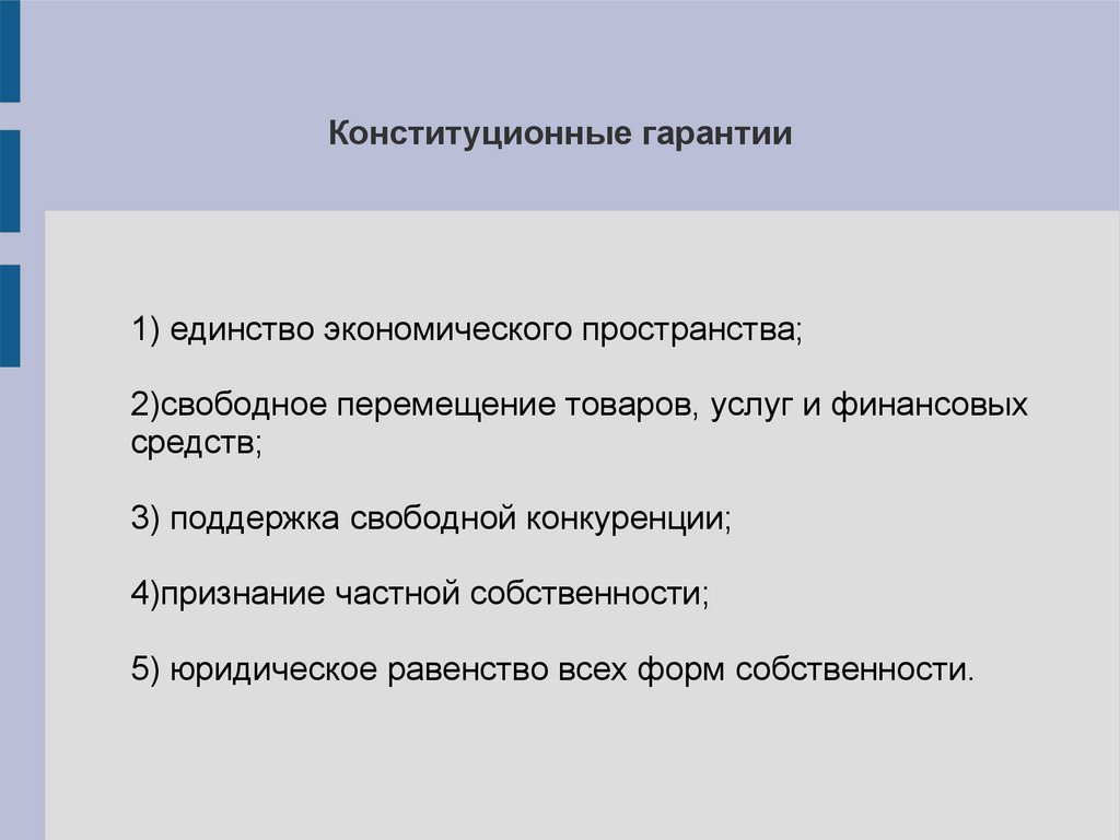 Конституционные гарантии1) единство экономического пространства;