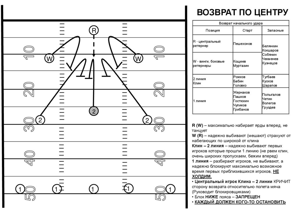 ВОЗВРАТ ПО ЦЕНТРУВозврат начального удара