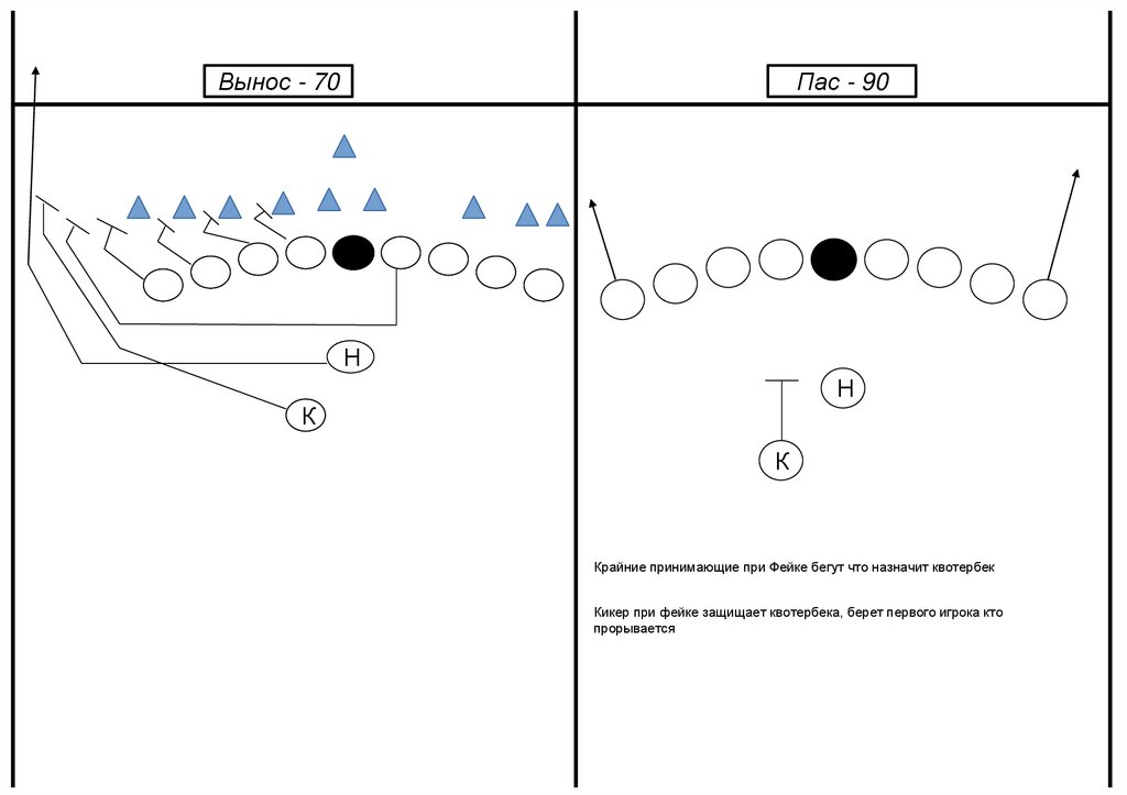 Кикер при фейке защищает квотербека, берет первого игрока кто