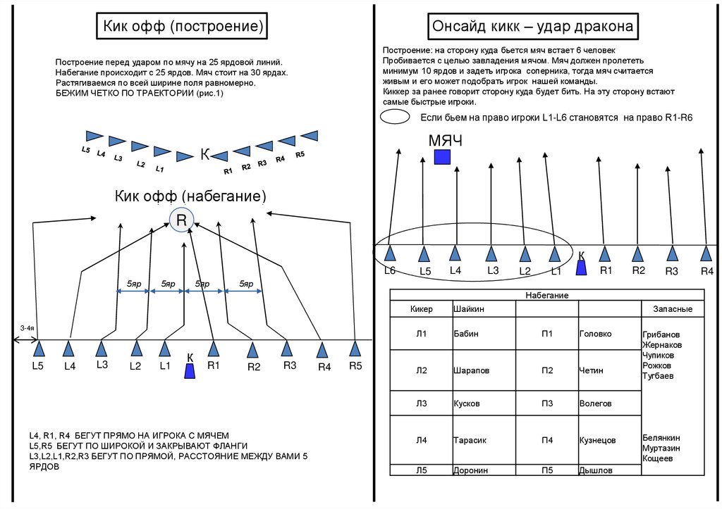 Если бьем на право игроки L1-L6 становятся на право R1-R6