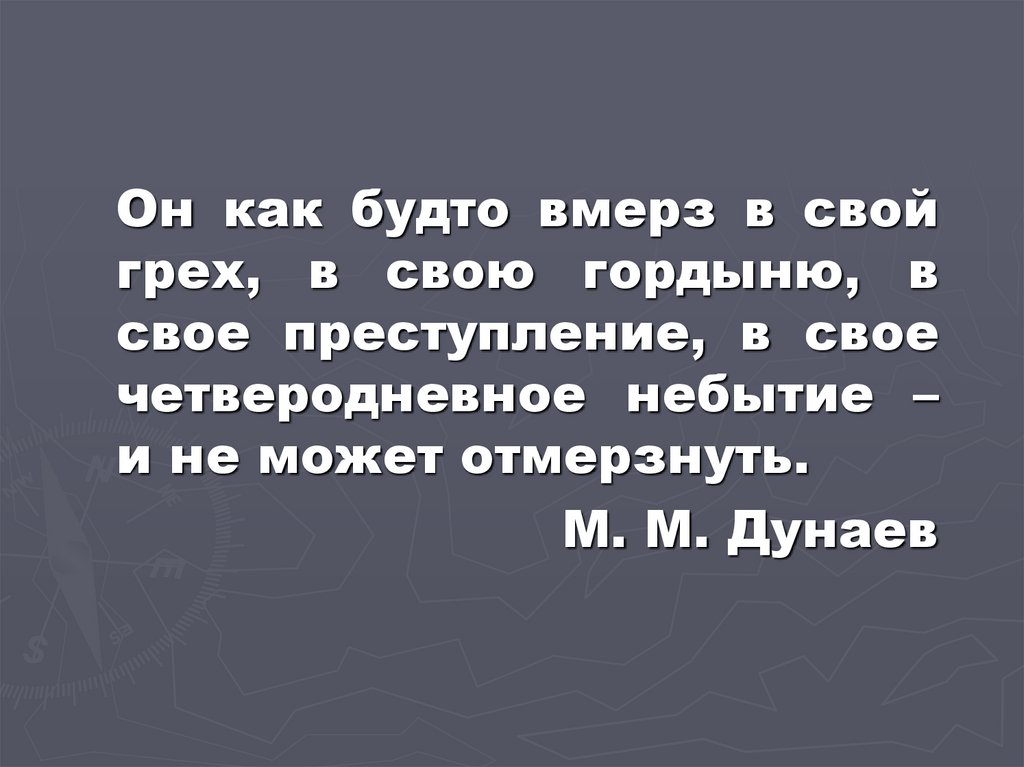 Он как будто вмерз в свойгрех, в свою гордыню, в