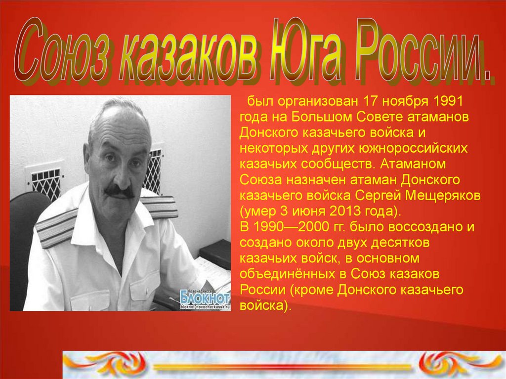Союз казаков России былобразован 28—30 июня 1990 года на