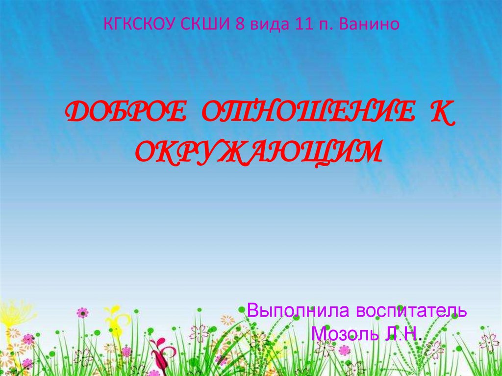 ДОБРОЕ ОТНОШЕНИЕ КОКРУЖАЮЩИМ