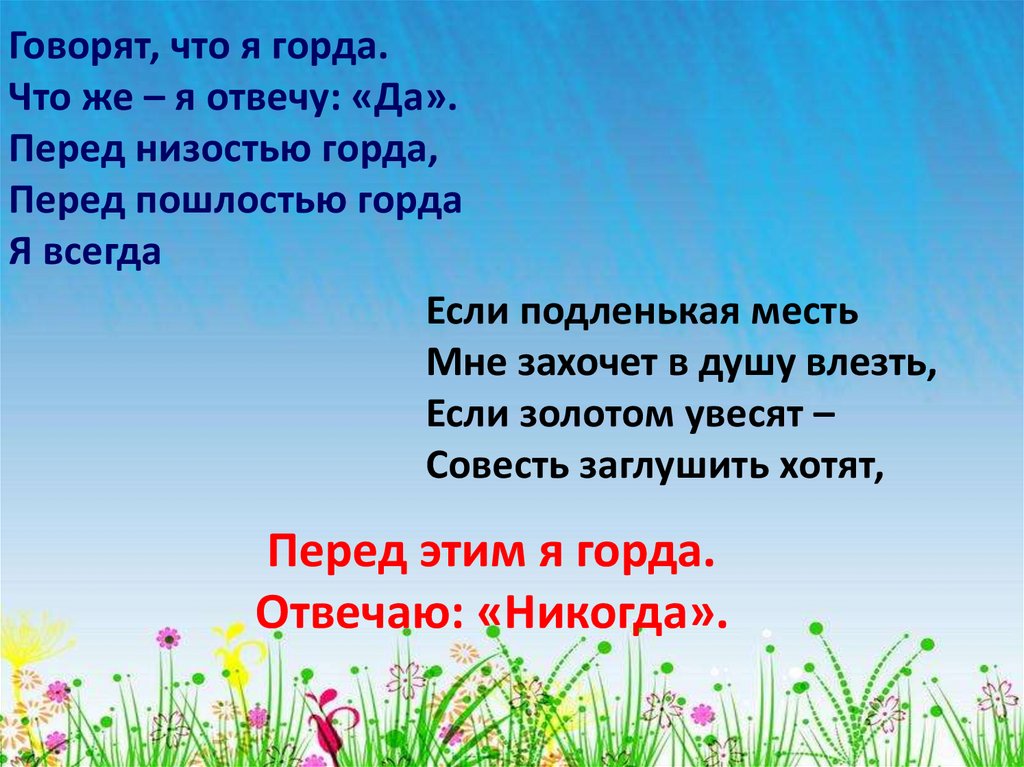 Говорят, что я горда.Что же – я отвечу: «Да».