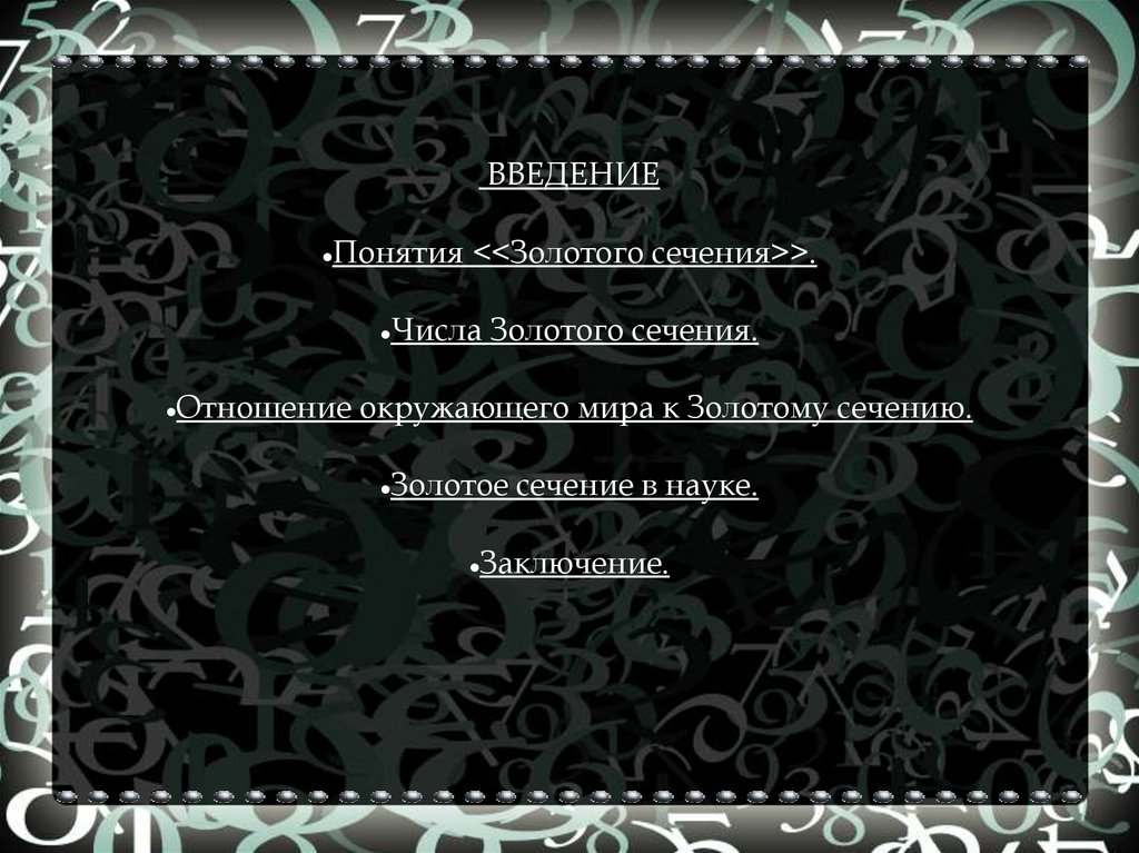 Отношение окружающего мира к Золотому сечению.