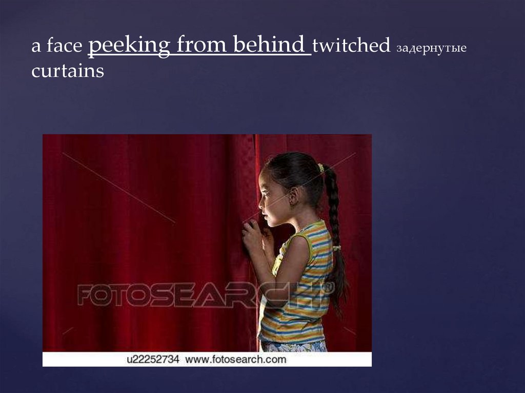 a face peeking from behind twitched задернутыеcurtains