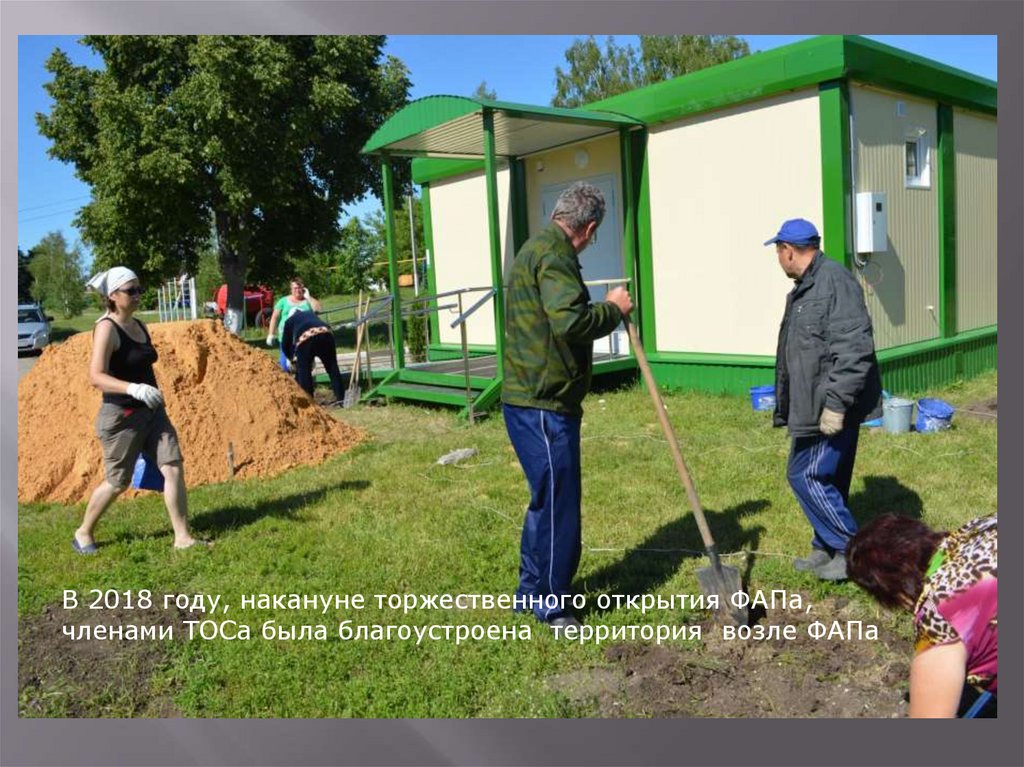 В 2018 году, накануне торжественного открытия ФАПа,членами ТОСа была благоустроена территория возле ФАПа