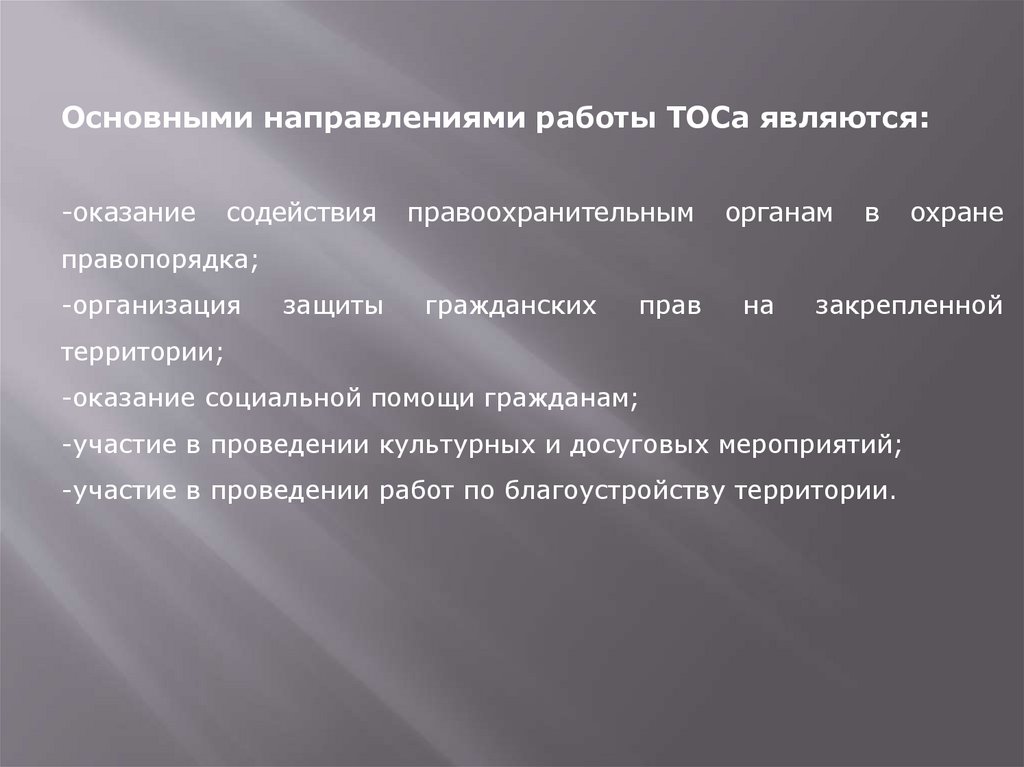Основными направлениями работы ТОСа являются:-оказание